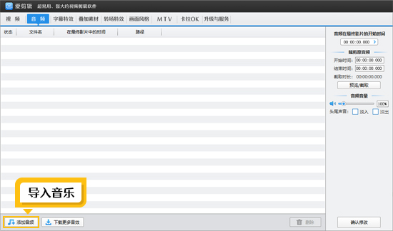 首先,将需要编辑的视频导入爱剪辑中,并添加你想要添加混响效果的音乐文件。