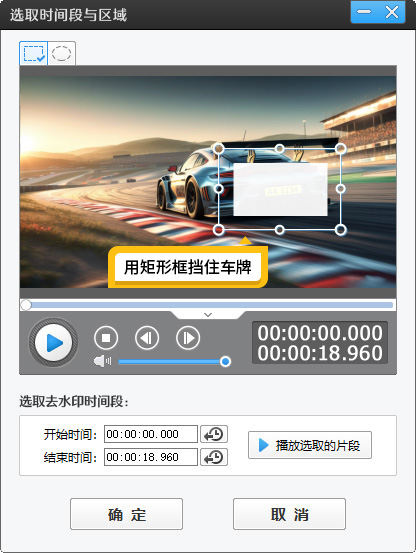 接着,找到“叠加素材”这一功能区域,点击其左侧的“去水印”选项,然后再点击“添加去水印区域”的按钮,此时会弹出相应的对话框,以供后续操作。针对不同形状的元素有不同的框选方式,如果是车牌等方形元素,可使用矩形框覆盖。