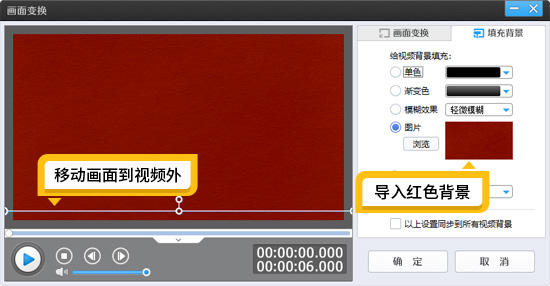 打开爱剪辑后,首先导入一个软件自带的黑幕视频,精准截取6秒时长。寻觅位于主界面左下角的“画面自由变换”功能按钮,轻击该按钮后,会弹出一个功能丰富的对话框。选择“填充背景”这一功能并点击,随即会出现多种填充方式,此时选择“背景图片”选项,然后从本地文件夹中挑选出提前精心准备好的那张喜庆红色背景图片,将其导入到视频中。之后,在视频的预览框内,运用鼠标或触控板,巧妙地把原有的黑幕视频拖放到界面之外,直至黑幕完全消失在视野中,此时,整个画面便被那热烈而喜庆的红色背景图所占据,一个充满浓郁节日氛围的红色背景视频就这样初步制作完成了。
