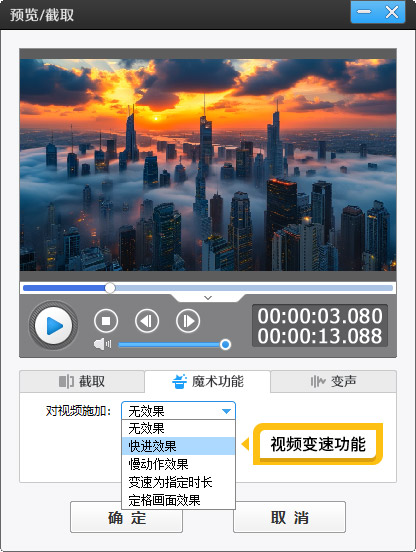 修改截取视频时间段方法一:在“视频”面板的“已添加片段”中双击要修改的视频片段,会弹出“预览/截取”对话框,我们可以对要截取的视频时间段进行修改。图1:双击视频片段缩略图图2:修改截取视频时间段方法二...